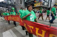 The Judge Memorial contingent marches as the 39th annual St. Patrick's Parade makes it's
