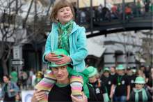 A young girl seems to enjoy the 39th annual St. Patrick's Parade as it makes it's way thr
