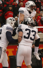 Receiving • BYU, Jacobson 7-92, Kariya 4-29, Hoffman 3-22, Mahina 2-32, Ashworth 2-12, Z. Mendenhall 2-12, Holt 1-17, Di Luigi 1-12. Utah, Brooks 3-72, Smithson 3-35, Rogers 2-38, Matthews 2-10, Wide 2-5, Christopher 1-37, M. Asiata 1-6, S. Asiata 1-4.