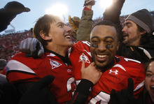 Key moment • Utah's Brandon Burton blocks a game-winning field-goal attempt as time expires.