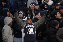 Fans poured onto the field as players from both sides looked on in disbelief. The Cougars wasted a 13-0 advantage as they self-destructed with four turnovers in the game, while Utah's offense, inept for three quarters, put 17 points on the board in the final 15 minutes to get the win.
