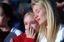 Smart cousins Amanda (right) and Sierra Smart cry at a family press conference at the Fed