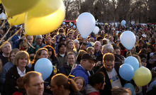 Salt Lake City residents attend an event at Liberty Park to celebrate the return of Elizabeth Smart in March 2003.