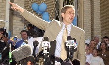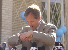 Ed Smart speaks to the media at the Federal Heights LDS Ward. His daughter Elizabeth Smart had been found alive in March 2003 after being missing for 9 months.