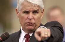 Ed Smart points into the mountains where his daughter Elizabeth apparently lived with her kidnapper. Ed Smart, Elizabeth's father, spoke with reporters in front of the Federal Heights LDS Chapel the day after his daughter was found safe in March 2003.