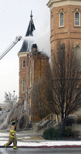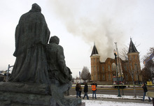 The four-alarm fire, which was reported at 2:43 a.m., burned so fiercely through the twisting ornate hallways, wooden pews and heavy timber that Provo Fire Marshal Lynn Schofield pulled his crews out of the building.