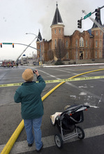 While the smoke billowed, a crowd gathered, shooting photos and video and sharing memories. Among them was D. Robert Carter, a historian from Springville who first visited the tabernacle in the 1940s to sing in a Primary choir during an LDS stake conference.