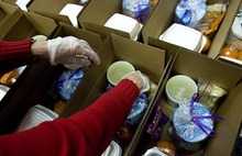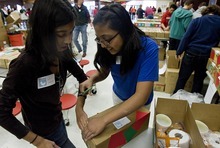 All day Friday, 150 volunteers toiled in the West High cafeteria, preparing meals and assembling packages of gifts, food and household items for the refugee families, representing 665 people, as well as meals for 350 homebound seniors. The final touches were completed Saturday and then the packages were delivered.
