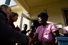 Cela Nodjigoto's older brothers and sisters crowded the front door of their small Rose Park home Saturday as Pam and Stan Herskovitz delivered a holiday greeting to her parents. In tow was a trunkful of toys, food, clothes and household items for a family that recently fled its central African homeland with little besides one another.