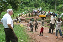 Although the Barlows carry Mormon missionary badges, they aren't looking for conversions. Instead, the couple have a decidedly humanitarian purpose one that brought tears to Lincoln's eyes on a drizzly afternoon as he paused beside an algae-rimmed pond where children squatted on a pair of rain-slick logs and dipped their five-gallon jugs for drinking water. The children then plugged their jugs with green bananas and hauled them up the hill.