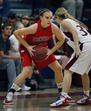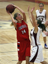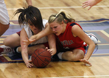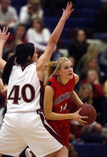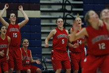 The Red Devils' press was so effective, the Mustangs managed only 12 points in the first three quarters by which point the Springville starters were on the bench. Herriman was in serious danger of being shut out in the third quarter before Brooke Gunter nailed a jumper near the end.