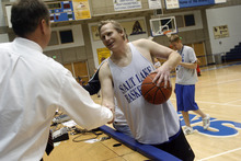 "My first year here was Norm's first year here," said Chad Kartchner, who was a Bruin from 1992-94, and currently resides in Draper. "He was a lot younger then, so he used to get out on the court and kick the crap out of us because he could still play."