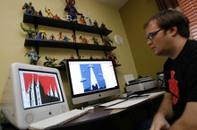 In the family's guest bedroom, Page's main canvas became a computer, his brush became a mouse, and his palette, software programs such as Photoshop. He surrounded himself with plastic action figures from comic books, science fiction and TV's "Star Trek."