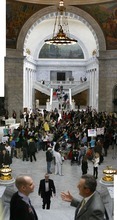 Hymas and other advocates tried to encourage lawmakers, who are weighing budget cuts, to fund social service programs. Rep. Becky Lockhart, the new speaker of the Utah House, was among the speakers.