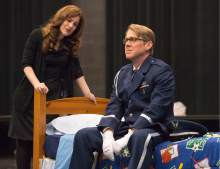 Megan Marino gave a moving portrait of Brian's wife, Jessie at a loss as to how to help him, but determined to avoid the sad fate predicted by her grandmother: "The war will kill him at home." Madeleine Choir School choristers Anthony Villanueva, Henry Poppe and Alex Yannelli showed how the strain affected the couple's young sons. "The war followed him home," the boys sang. "He felt like a stranger, not like a dad."