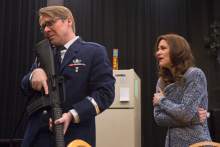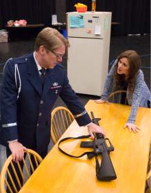 Daniel Belcher, a frequent guest at Utah Opera in more traditional baritone roles such as Papageno and Figaro, has been associated with this opera from the very beginning. In Friday's performance, the first of two, Belcher gave a riveting portrayal in the physically and emotionally taxing role of Brian, a bomb-disposal expert who returns home and finds that he himself has become a time bomb. An undiagnosed blast-induced traumatic brain injury has scrambled his memories and caused him to disconnect from his family as seemingly mundane moments transport him back to the desert. "The road to school is fraught with danger," Belcher sang as he armed the family minivan. Stage director David Schweizer illuminated the connections between wartime and domestic life with striking effect.