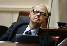 Dennis Stowell enters the back of the Senate chamber slowly, almost shuffling to his desk.