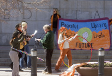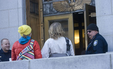 Outside Salt Lake City's federal courthouse Tuesday morning, quiet prevailed unlike Monday, when hundreds of protesters sang, chanted and marched in support of DeChristopher.