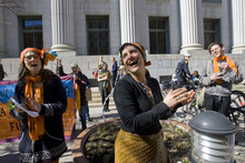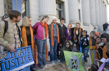 By afternoon, though, a few dozen had assembled to sing and chant as DeChristopher exited the courthouse.