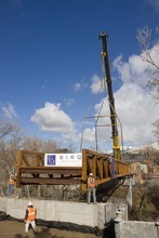 Hogle Zoo officials celebrated on Friday a "milestone" in the construction of the Rocky Shores construction project as the largest mobile crane in Utah set a new bridge over Emigration Creek, completing a major thoroughfare to what will be the most expansive and expensive zoological exhibit in Utah history.