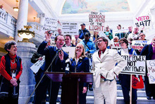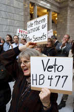 About 200 people rallied at the state Capitol midday Tuesday to demand the governor veto HB477, a bill that shields more government records from public disclosure. But Gov. Gary Herbert wasn't swayed.