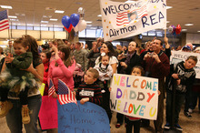 Those statistics were well reflected on Wednesday at Salt Lake City International Airport, where Rea and her daughters waded into a sea of hundreds of people who had come to welcome home the Air Force Reserve's 419th Civil Engineering Squadron.