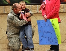 Lt. Col. David Konshok, the squadron's commander, said he was proud of how his team performed as they traveled from base to base in northern Afghanistan, building and maintaining living quarters for the tens of thousands of U.S. soldiers that have arrived during the past year in response to a White House-ordered "surge." But looking out over the crush of hugs and kisses and tears and laughter as his airmen were reunited with their families, Konshok said his proudest moment "is this, right here."