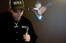 The teenager is entered in six different duck- or goose-calling contests during the show. Tate says the more calling he can do in front of judges, the better prepared he will be when the world championship rolls around this Thanksgiving in Stuttgart, Ark.