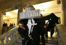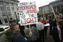 Outside the chambers Thursday and even in the House gallery for a time groups of angry constituents used the Capitol as a staging ground for protests against immigration reform bills and legislation closing off public access to some state records.