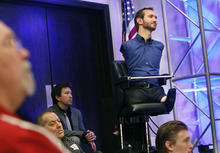 Sandy • With every seat in the auditorium and balcony filled, Senior Associate Pastor Ken Krueger urged the audience to double up if necessary to make room for the overflow standing in the lobby.
