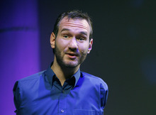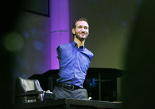 At one point, Vujicic flashed the audience the peace sign using his toes.