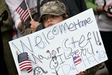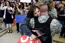Against a biting wind at the Utah Air National Guard Base in Salt Lake City, hundreds of friends, family members and supporters gathered to welcome home the 75-member company, which treated military members, contractors and civilians in a hospital clinic at Forward Operating Base Salerno in southeastern Afghanistan and also provided ambulance support in one of the most hostile areas of the war-torn nation.