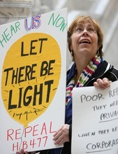 Elise Lazar, a longtime activist for various causes, said passage of HB477 reflected a "new level of arrogance" on the part of legislators who "no longer see their role as public servants."
