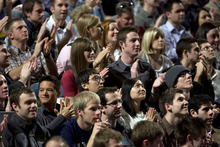 The reception Zuckerberg got at BYU's Marriott Center was akin to the welcome of a rock star, with thousands of people applauding his entrance and throughout the Q&A, even though he admitted he was a little nervous because, "I've never spoken to a stadium of people before."
