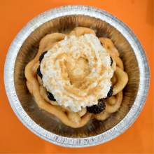 It sells a variety of funnel cakes and toppings, from the traditional with powdered sugar to strawberries and cream, peanut butter s'mores or salted caramel. Savory options include the Southwestern taco, with seasoned ground beef, lettuce and cheese, and the red curry pulled pork, with cream vinegar apple and cabbage slaw. Prices range from $5.99 to $8.99.