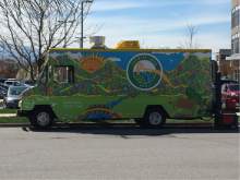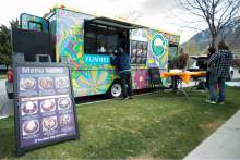 Launched last fall, the food truck is easily recognizable with its colorful 1970s-looking exterior that includes an orange and yellow sun rising over green and purple mountain peaks.