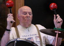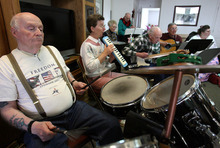Twila Allen, 51, who drives her husband to performances, said she was railroaded into joining the band. "Charlotte said if you are going to be here, you might as well perform." Allen plays the tambourine.