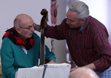 The octogenarian had not played an instrument for 60 years until about eight months ago, when he told his son he wanted to play. Randy bought him a string bass and his father, who has difficulty remembering his children's names, was able to play in perfect key.