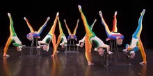 Former Nikolais dancer Alberto "Tito" Del Saz presided over the rehearsal, correcting and encouraging three trios of dancers to create a series of shape-shifting pyramids using benches and swivel stools as props.