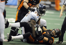 Spokane recovered its own kickoff after the ball bounced off an upright, but the play was negated by a personal foul penalty that gave possession back to the Blaze (3-2).