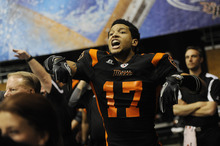 Later on an onside kick by Spokane, Utah's Ernie Pierce sneaked in as players watched the ball bounce and returned the kick 7 yards for a TD.