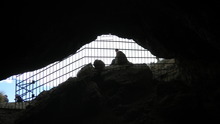 The cave was originally called Hands and Knees Cave when first visited by archaeologists, including Robert Heizer in the 1930s, because that's how they had to enter it. The name was changed when a large rock fell off the cliff face and narrowly missed an archaeological crew.