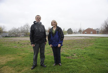 The empty lot across from Sally Barraclough's house became a makeshift park almost as soon as crews removed the last piece of debris following the demolition of an old Mormon wardhouse.