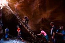The 2-mile hike to Kanarraville Falls ascends a slot canyon and would be an ideal family hike but for some pour-overs that would be difficult for small children to negotiate.