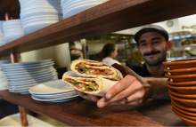 Less memorable was the shakshouka ($11), a breakfast dish of scrambled eggs that was curiously bland despite the stated additions of tomato, onions, cheese and a spice blend known as zaatar. It required a good dose of salt and hot sauce. A generous helping of potatoes fried with onions and crunchy salad with pickles rounded out the plate. A hummus wrap ($8) was also lacking in flavor, perhaps because most of the sauce migrated downward as it was being eaten. It definitely needs more pickles but, then, I do love those pickles.