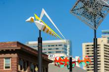 The Salt Lake City Public Art Program spent the day installing the permanent Flying Objects public art sculpture series along 300 South in downtown Salt Lake City, Saturday April 15, 2017.