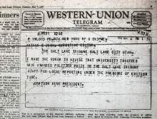 Managing Editor Jim England chartered "one of the fastest small airplanes adaptable for flying in desert areas" and whisked a young reporter, Robert Alkire, and photographer Jack White off to Cedar City, anticipating it was close to wherever those planes might be. Besides, The Tribune had a bureau in Cedar City with the technology to send stories and pictures directly to the newsroom.