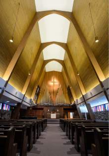 In 1952, the congregation bought and temporarily moved into the Crest Theater, 2021 E. 2700 South. The church then bought 1.6 acres at its current 3300 South site, erecting its first building the following year and expanding the campus with additions through 1963. In 1966, a new sanctuary opened; a gymnasium and additional classrooms were built in 2005.