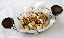 Dessert portion sizes are generous enough to share. House-made carrot cake ($5.95) was smothered in rich, buttery cream cheese frosting. House-made vanilla ice cream came flecked with real vanilla. The star of the desserts though was the "Italian" doughnuts ($6.50). These small, dense, doughy bites came to the table piping hot, oozing oil from the fryer and ready to be dipped into the accompanying ganache and caramel.