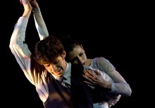 Christopher Anderson's "Intonation" is a stark, angular work. Its sections are introduced by stunning photographic projections of the dancers' hands, limbs and faces shot by Erik Östling. The dancing of its all-woman cast is arresting, as are the effects of Nicholas Cavallaro's theatrical lighting. Greater integration between the photography and dancing could make the work even stronger.